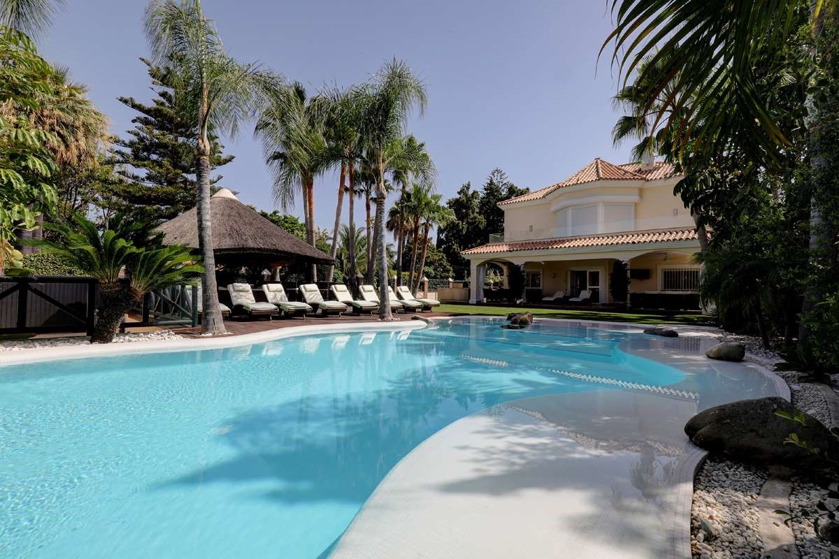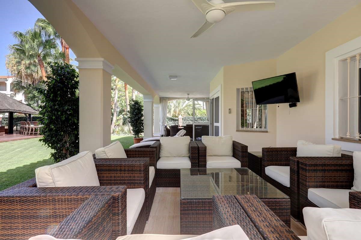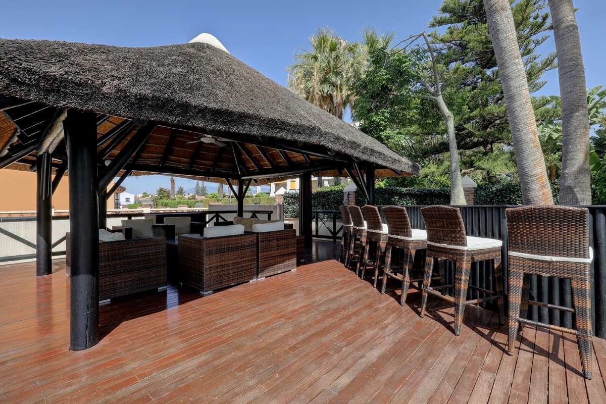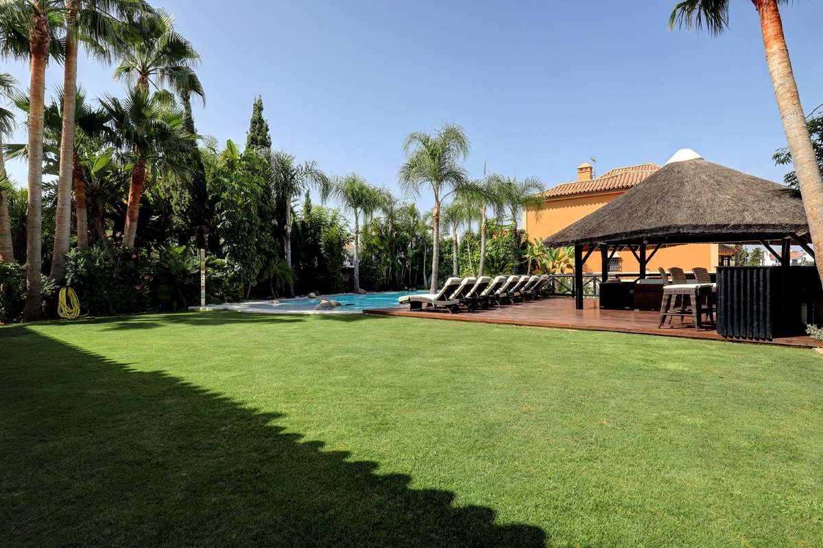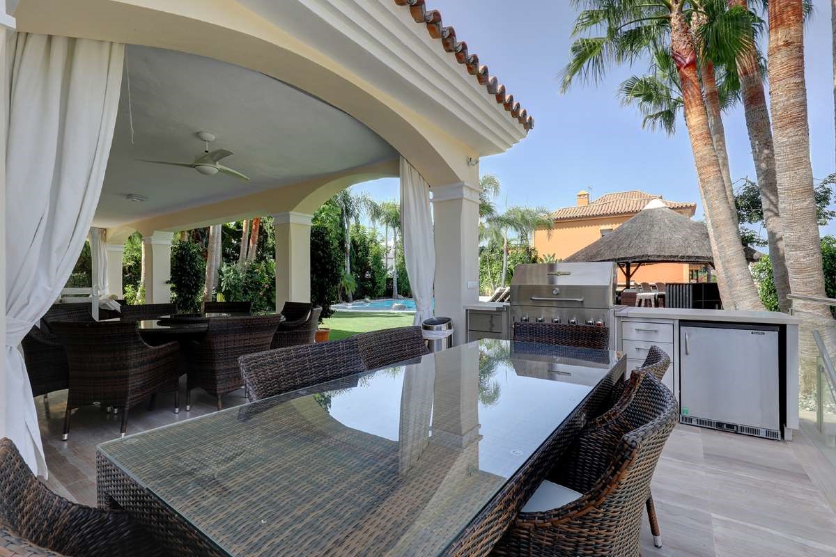 The villa is only 200 meters from the beach, as well as within walking distance of shops, restaurants, cafes and supermarkets. The villa is located a short walk from the center of Puerto Banús. The outdoor area creates the perfect vacation setting with a large private pool, covered cabana, lush garden and barbecue. Walking distance to Puerto Banús Walking distance to the beach, restaurants, cafes and supermarkets