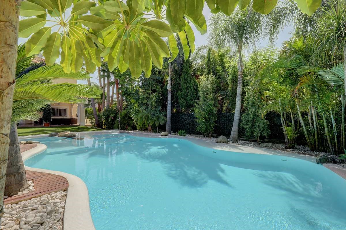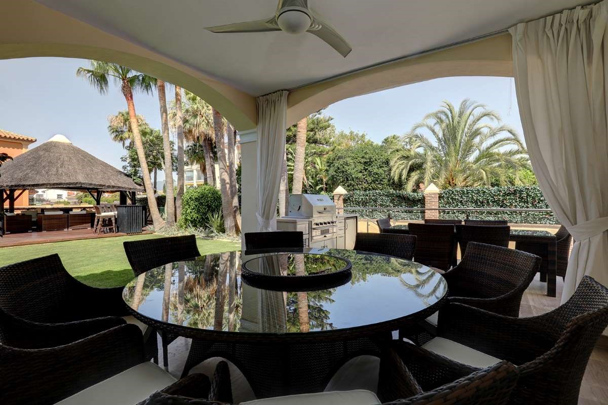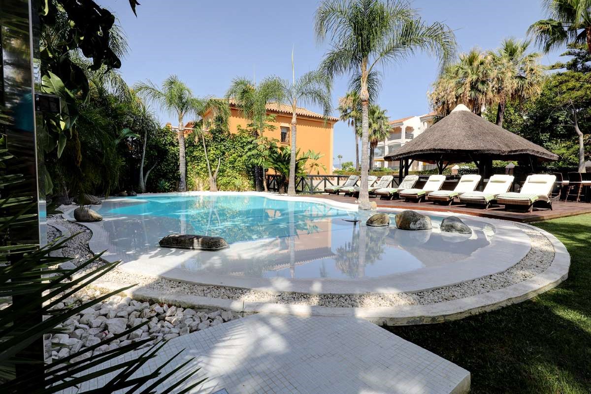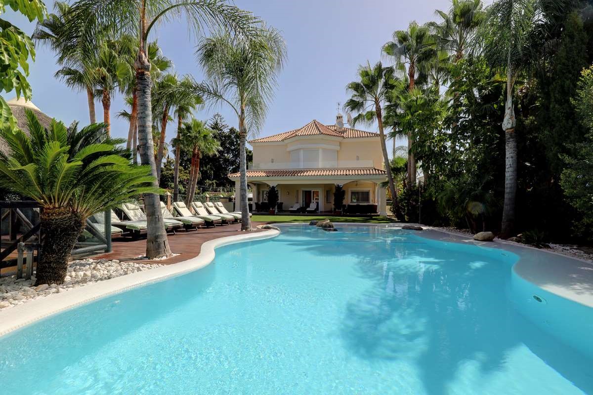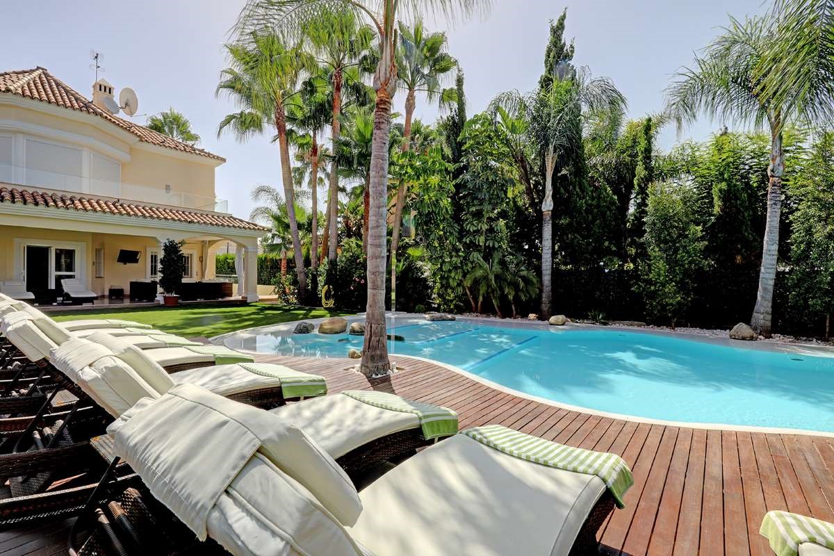 The villa is only 200 meters from the beach, as well as within walking distance of shops, restaurants, cafes and supermarkets. The villa is located a short walk from the center of Puerto Banús. The outdoor area creates the perfect vacation setting with a large private pool, covered cabana, lush garden and barbecue. Walking distance to Puerto Banús Walking distance to the beach, restaurants, cafes and supermarkets
