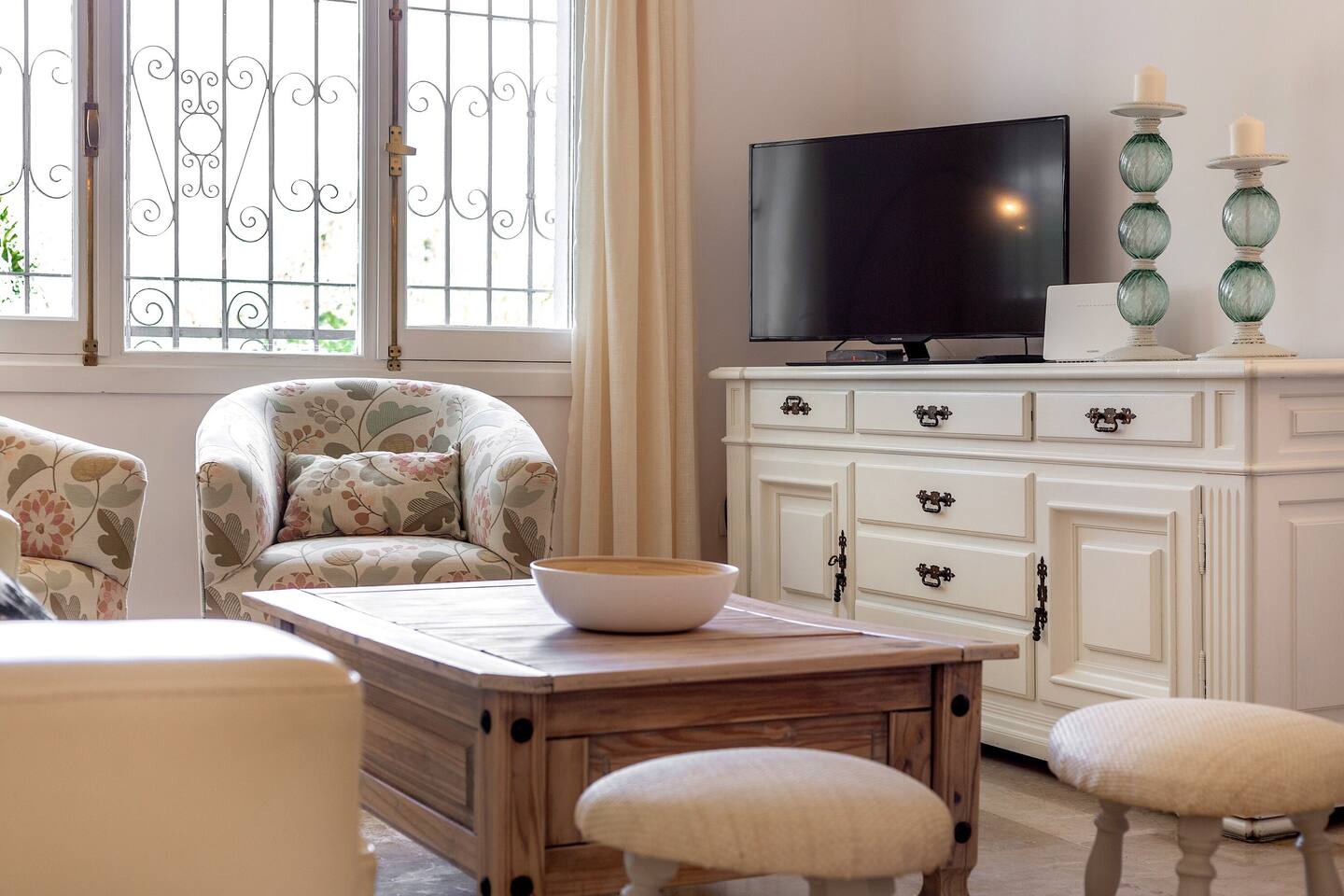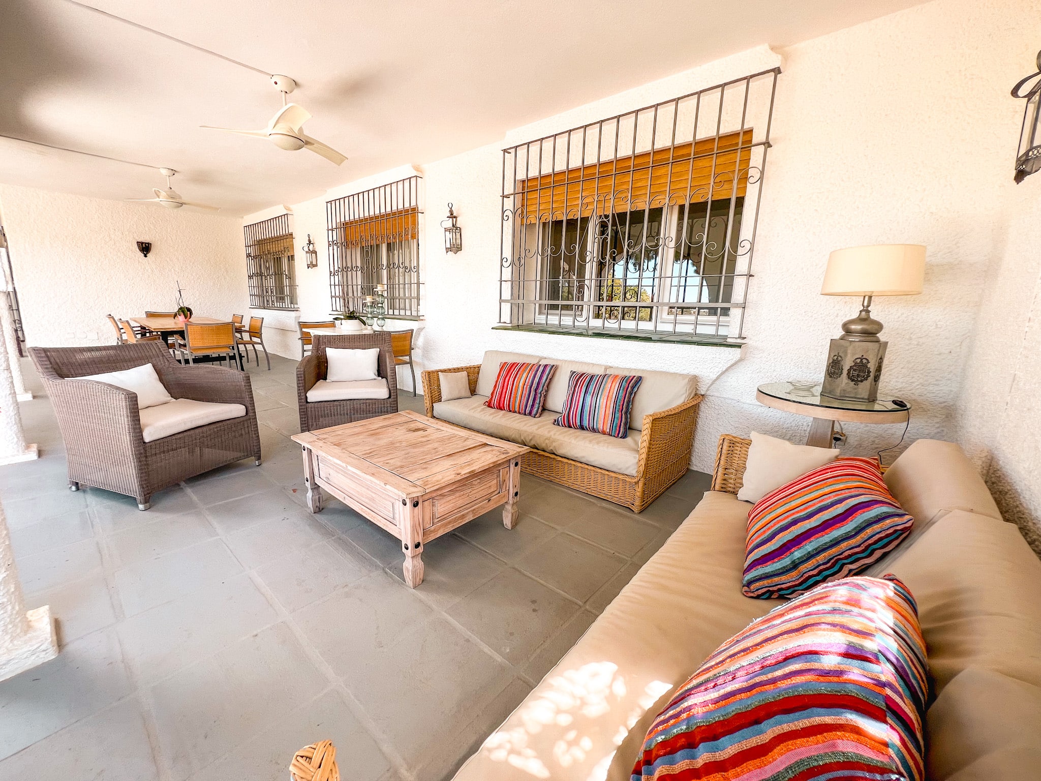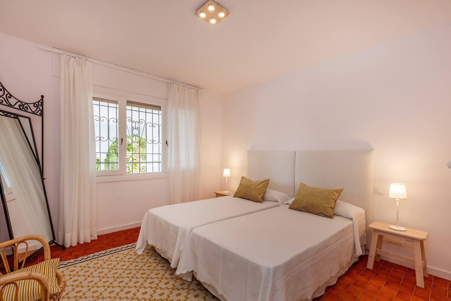 Beautiful renovated Villa! This villa is located just 1km from Puerto Banús. It has all the amenities to spend an unforgettable stay. 2 living rooms, one with a large table to eat and chimney and another one with several sofas, tv and chimney. There are two bedrooms with a double bed each one and bathroom ensuite, and two more bedrooms with two singles bed each one and a bathroms to share
