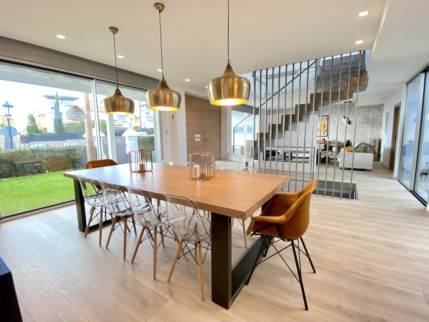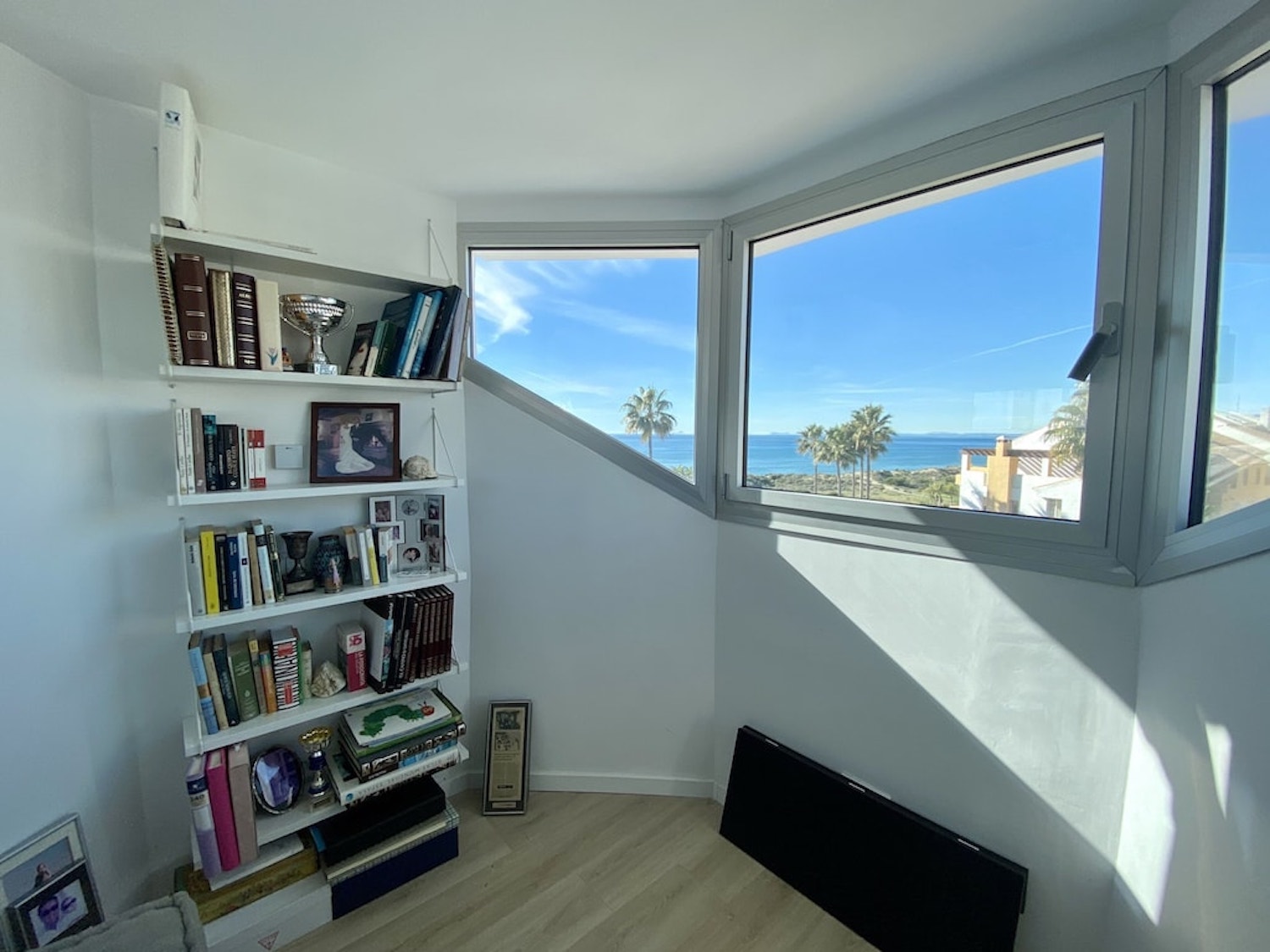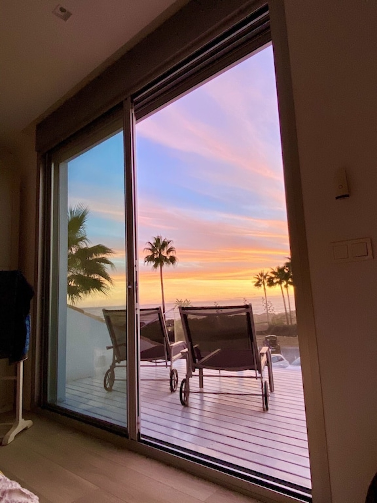 Magnificent bright family home sits in real beachfront line residential complex of Las Dunas, always in high demand, in BahÃa de Marbella, best beach of Marbella. Luxury refurbished in March 2020, the property offers all the modern-day comforts and extras but within an urbanization which is one of the most well known in Marbella. The villa presents, on ground floor: lovely bright, entrance hall; 100 m2 living room with working fireplace and with direct access onto the wonderful porch and interior Japanese garden with indoor heated swimming pool; sitting room also with fireplace and access to the garden and pool area; lovely modern open-concept kitchen and dining area, guest W. C. First floor: master bedroom with en-suite bathroom offering bath tub as well as walk-in shower with direct sea views; additional 2 en-suite bedrooms, all three upper bedrooms with amazing views to Mediterranean Sea and Africa. Lower floor: 2 wonderful bedrooms with direct walking exit to patio Ingles, large office with lots of space and all the facilities; sauna shower room and surf storage; guest or staff accommodation to include bedroom, bathroom and small lounge; private garage for 3 cars. All upper bedrooms have access to a solarium terrace with incredible direct Mediterranean sea and Africa views. Fully installations are the following: cold and hot air-conditioning, underfloor heating in every room, alarm system, wonderful parquet floor in every room, satellite T. V., high speed Internet access everywhere in the plot. This is a truly gorgeous private home, sitting right in front of the best beach of Marbella, a lovely community with nice gardens and 2 big swimming pools, within a beautifully maintained, gated community with controlled entry, and 24 hours double surveillance team, in one of the best Marbella locations!