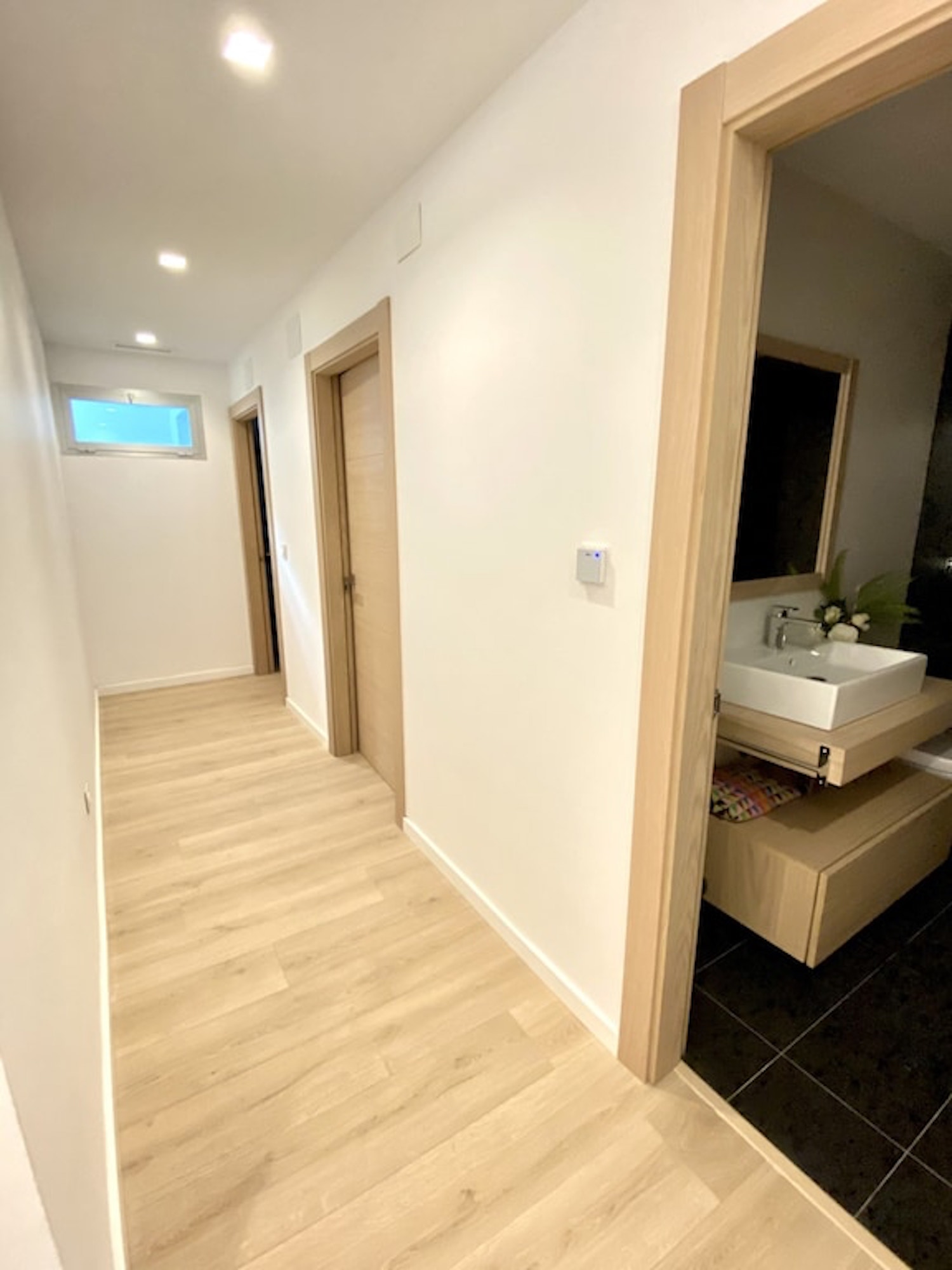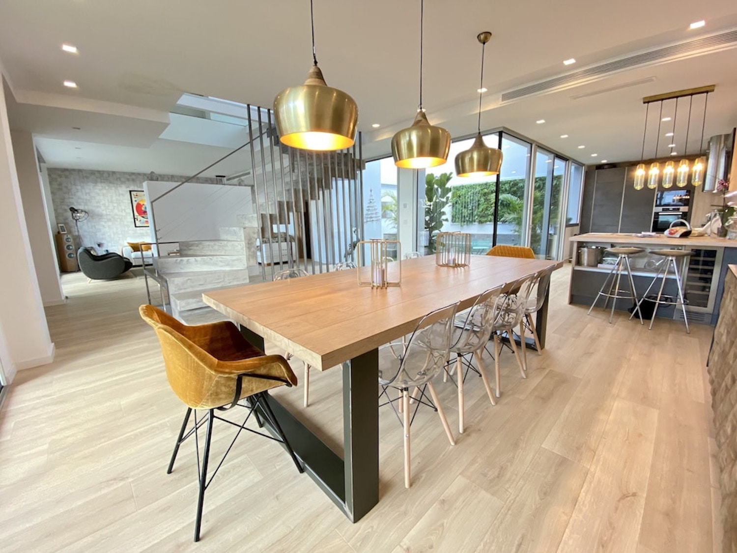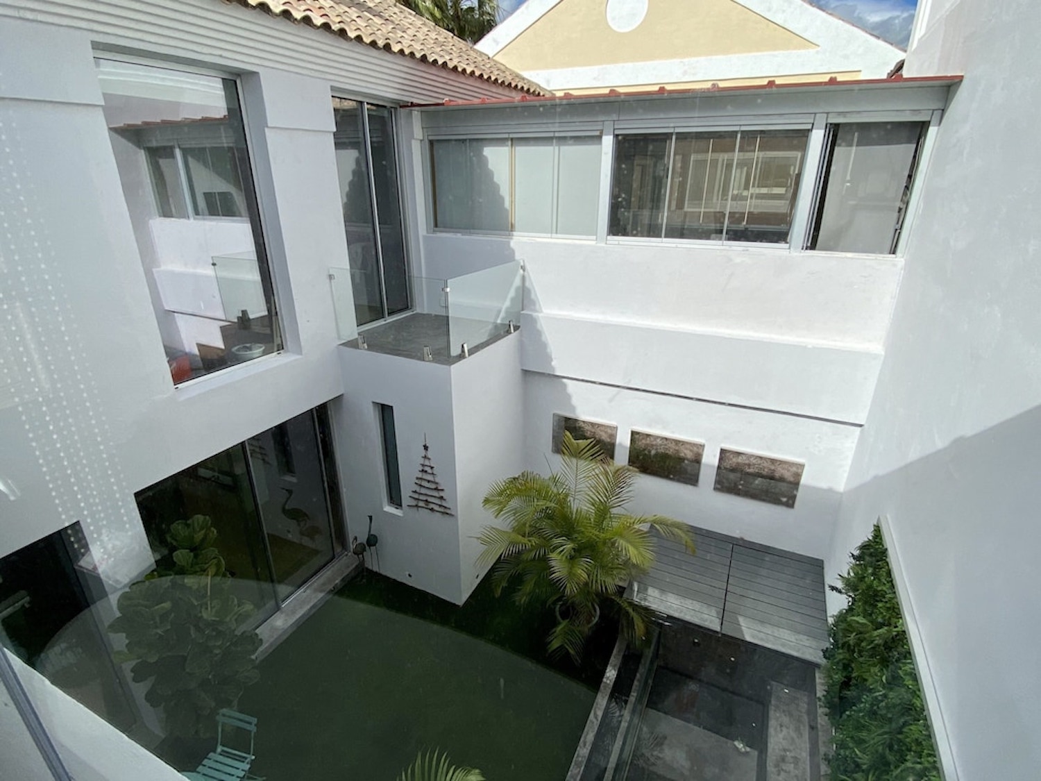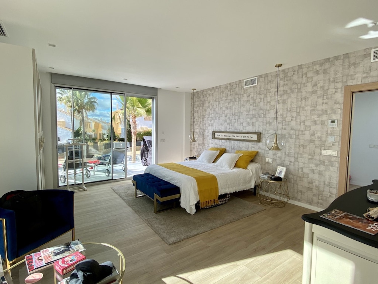 Magnificent bright family home sits in real beachfront line residential complex of Las Dunas, always in high demand, in BahÃa de Marbella, best beach of Marbella. Luxury refurbished in March 2020, the property offers all the modern-day comforts and extras but within an urbanization which is one of the most well known in Marbella. The villa presents, on ground floor: lovely bright, entrance hall; 100 m2 living room with working fireplace and with direct access onto the wonderful porch and interior Japanese garden with indoor heated swimming pool; sitting room also with fireplace and access to the garden and pool area; lovely modern open-concept kitchen and dining area, guest W. C. First floor: master bedroom with en-suite bathroom offering bath tub as well as walk-in shower with direct sea views; additional 2 en-suite bedrooms, all three upper bedrooms with amazing views to Mediterranean Sea and Africa. Lower floor: 2 wonderful bedrooms with direct walking exit to patio Ingles, large office with lots of space and all the facilities; sauna shower room and surf storage; guest or staff accommodation to include bedroom, bathroom and small lounge; private garage for 3 cars. All upper bedrooms have access to a solarium terrace with incredible direct Mediterranean sea and Africa views. Fully installations are the following: cold and hot air-conditioning, underfloor heating in every room, alarm system, wonderful parquet floor in every room, satellite T. V., high speed Internet access everywhere in the plot. This is a truly gorgeous private home, sitting right in front of the best beach of Marbella, a lovely community with nice gardens and 2 big swimming pools, within a beautifully maintained, gated community with controlled entry, and 24 hours double surveillance team, in one of the best Marbella locations!