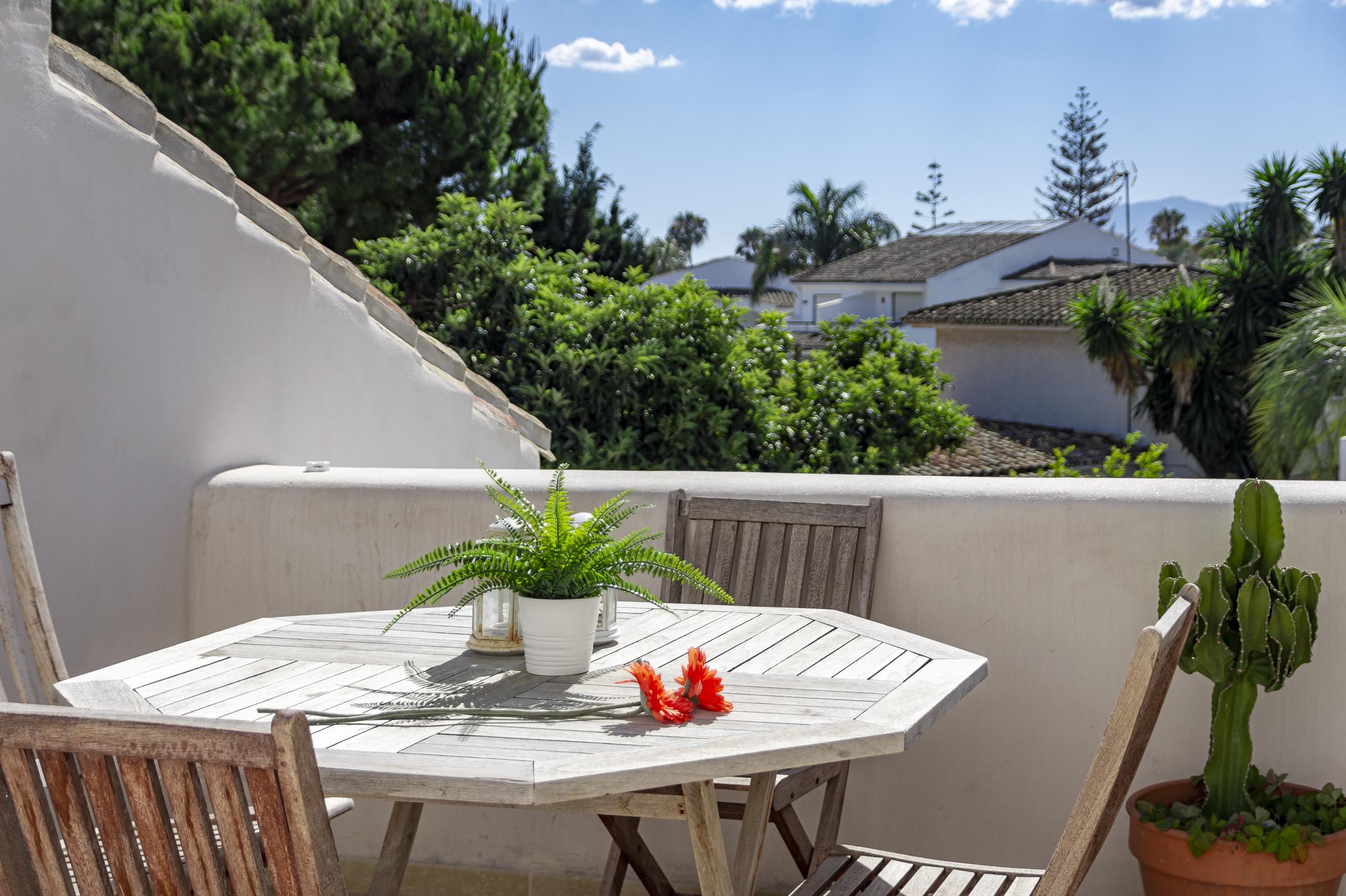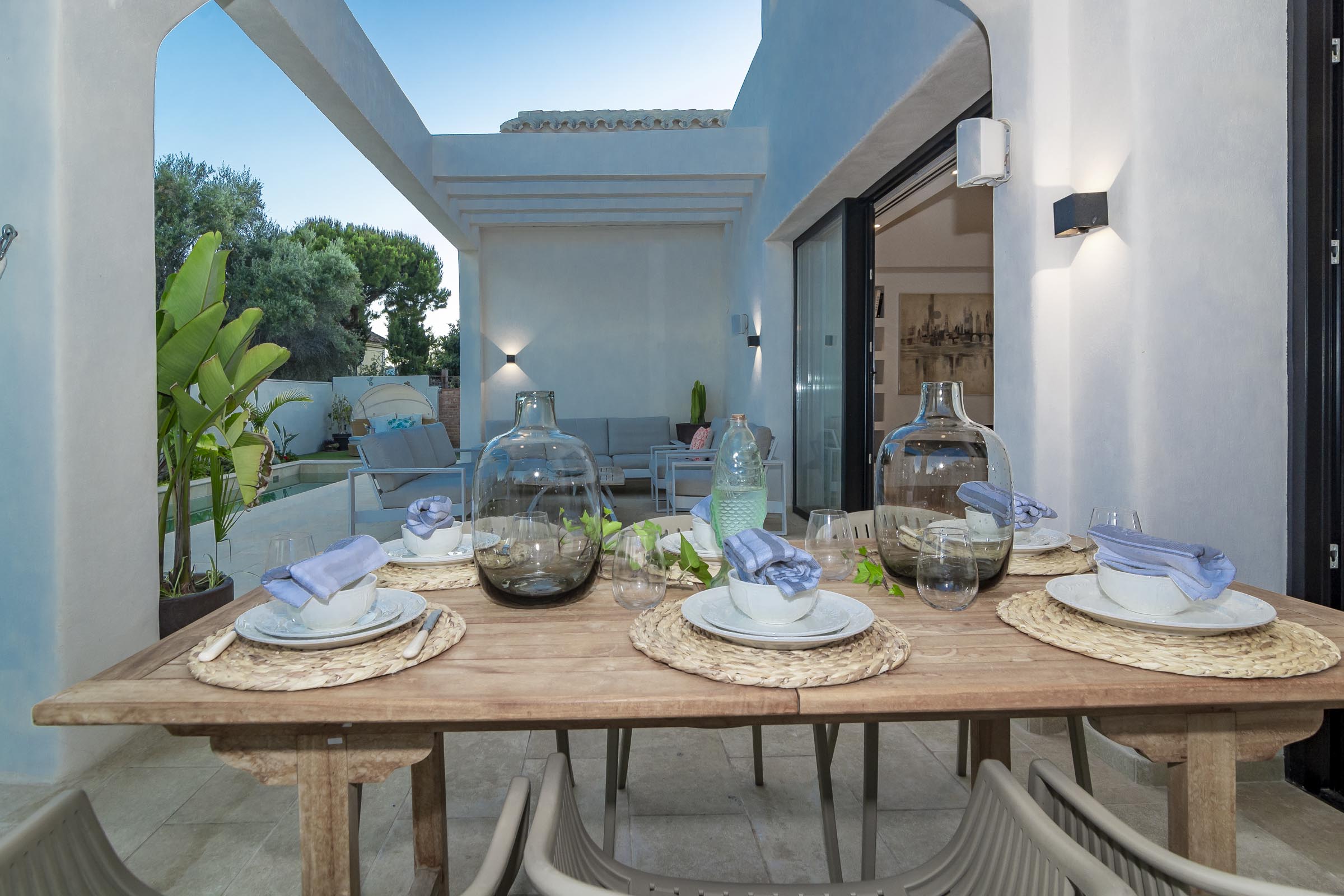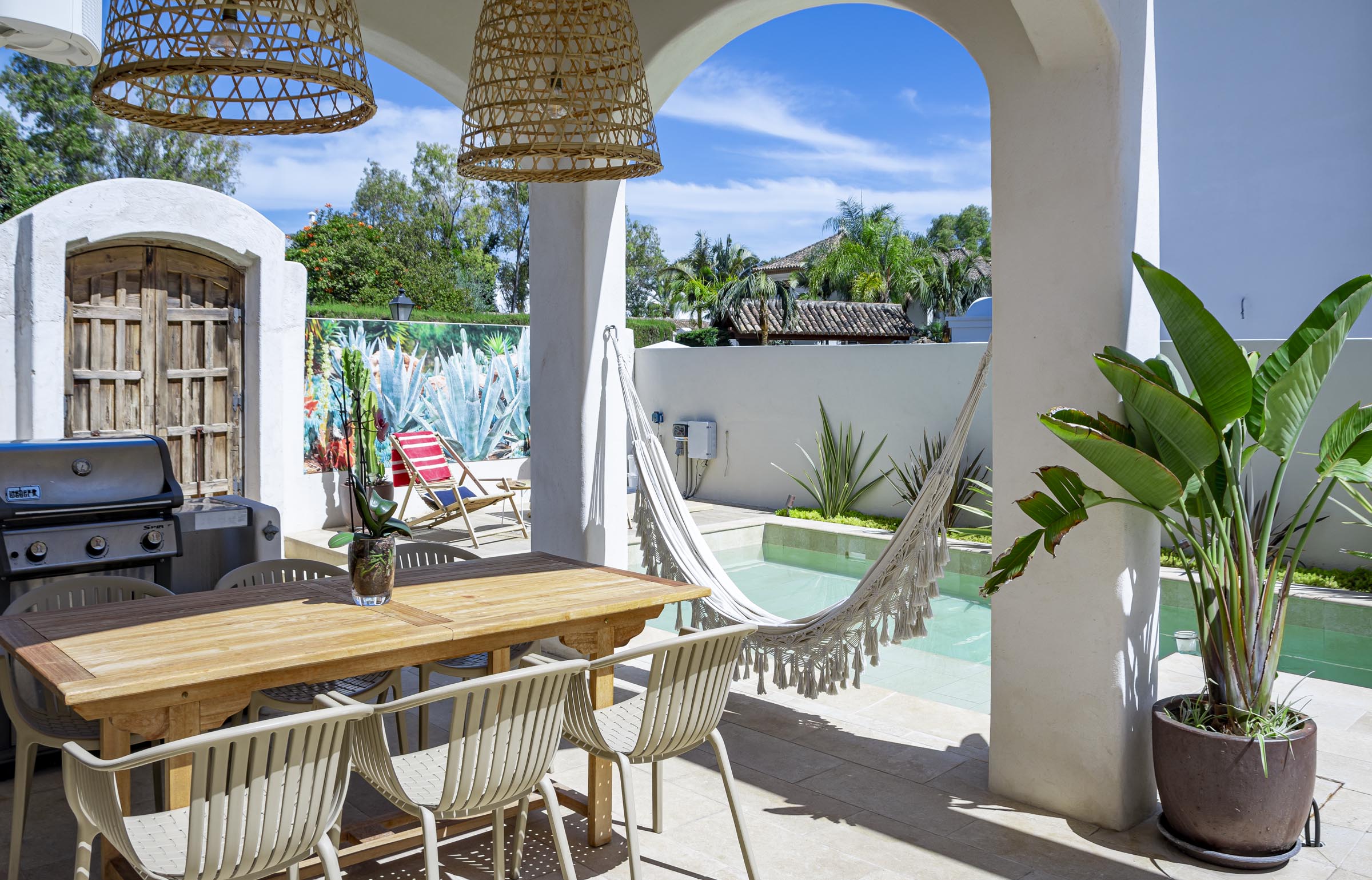 With over 300m of outdoor space, creating the finest combination between soft and natural colours and classic Andalucian architecture. There is a wide variety of sunbeds, a hammock, seating areas and dining facilities, all surrounding the saltwater pool and jacuzzi.
