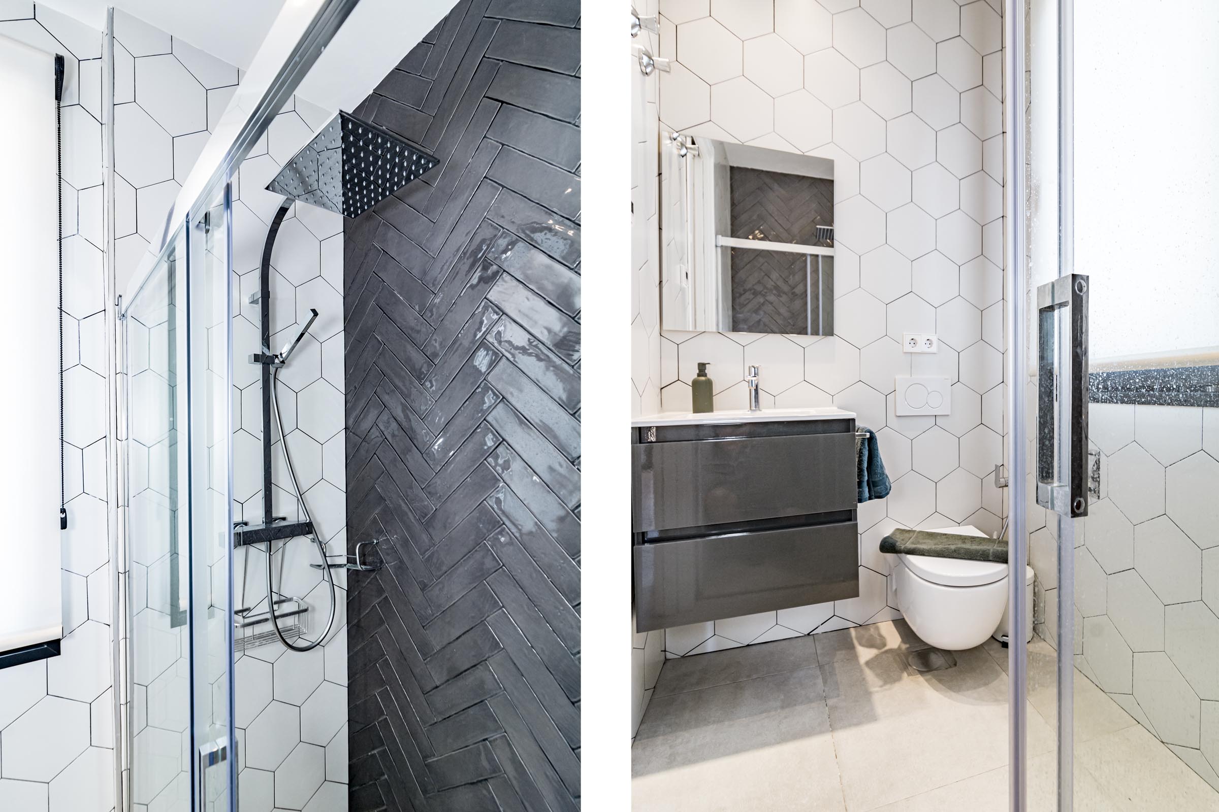 The fourth bedroom suite is downstairs, on the basement level. It is flooded with natural light and enjoys 3m high ceilings. This bedroom has a 180x200cm Vispring Bed and a bunk bed, making it the ideal room for various uses such as a kids room, a young family with small children, employees, etc.
